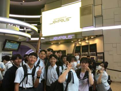 2組、3組、6組は東京ジョイポリスに到着しました。外は雨が降り続いていますが、ジョイポリスは室内のため天候に左右されることはありません。入場前からみんな何に乗ろうか考えてウキウキしています。