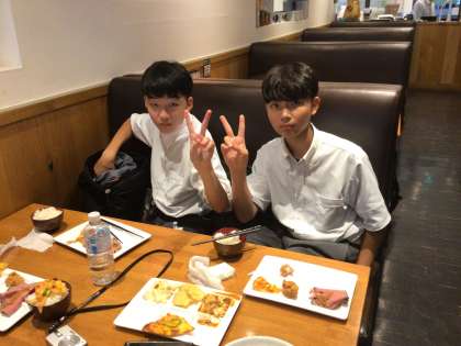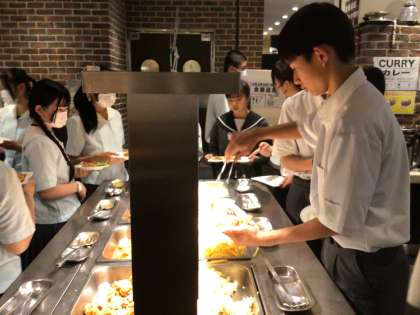 本日の夕食はビュッフェです。マナーも気をつけながらたくさん食べています。