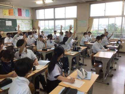 2年生では保健の授業が行われ、けがや傷害の発生要因や予防について考えました。けがや傷害を防ぐためにはどうすればよいかについて、多くの生徒が積極的に手を挙げ、自分の意見をしっかりと発表していました。話し合うときは話し合う、聞くときは聞く、切り替えがしっかりとできていたと感じます。