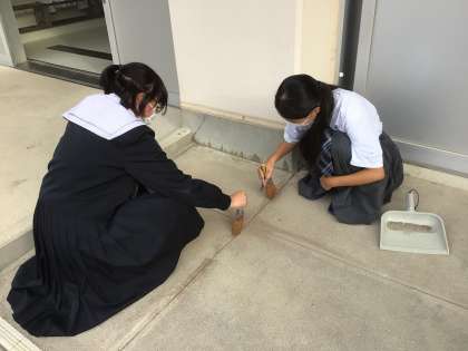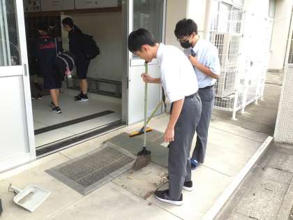 「清掃・誠実・信頼」の頭文字「S」を冠した新たな取り組みとして、朝の清掃ボランティア活動「前中3S活動」を企画しました。初日の今日は、約20名の生徒が自主的に参加し、校内の美化に力を注いでくれました。