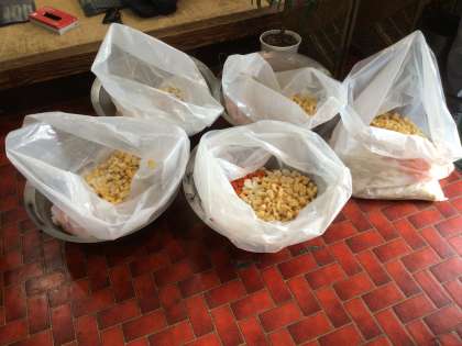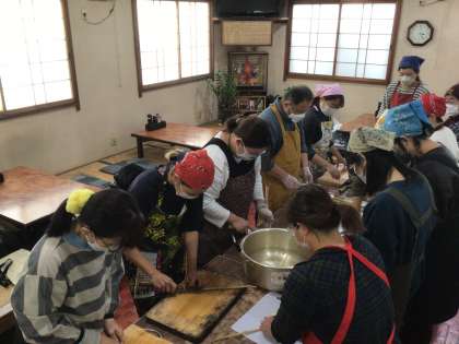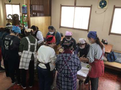 12月3日(水)、翌日のマラソン大会での炊き出しに向けて、前林発展会の皆様、地域の民生児童委員の皆様、さらに前中応援隊としてボランティアの皆様にご参加いただき、豚汁の具材となる野菜を切っていただきました。