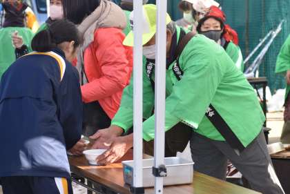 本年度のマラソン大会では、地域の皆様の温かい炊き出しによって、生徒たちの頑張りをねぎらっていただきました。