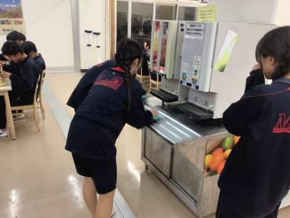 1日目には見られなかった、食堂内の清掃や整頓を自ら行う生徒たちの姿も見られました。