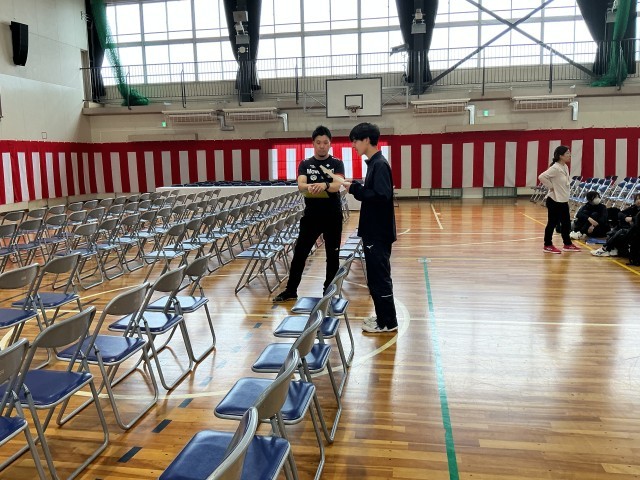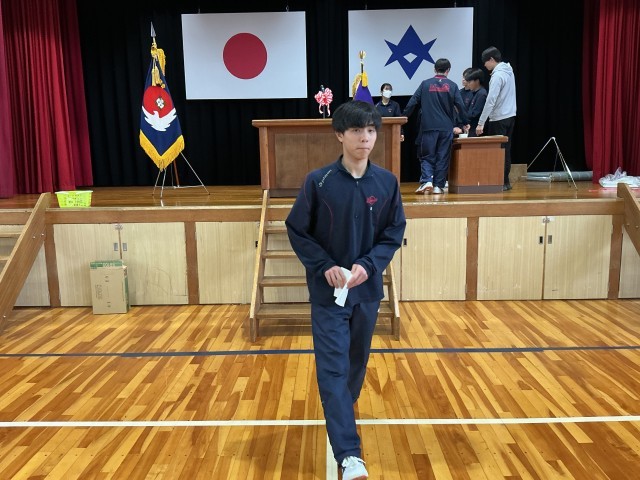 式で生徒代表の言葉を担当する生徒が所作の確認をしていました。