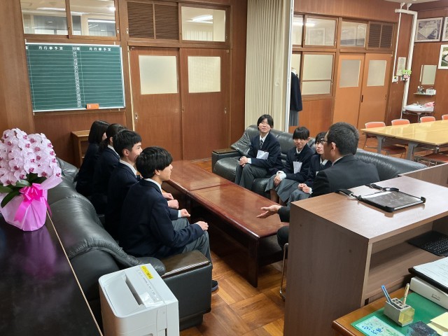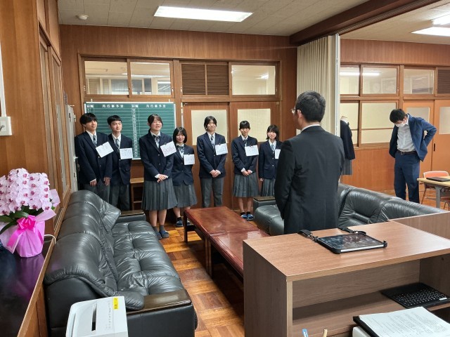 前期生徒会執行部の生徒が、校長室にて改めて決意を話しました。