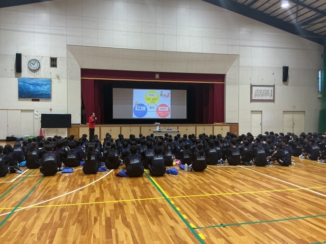 1年生を対象に、交通安全教室を実施しました。改正された交通法規や反射材の効果や危険な自転車の乗り方について学習しました。