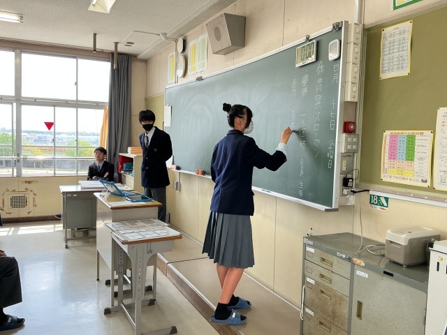 2年生は体育祭に向けてキーワードを出し合いました。それをもとに、目標立てをしました。