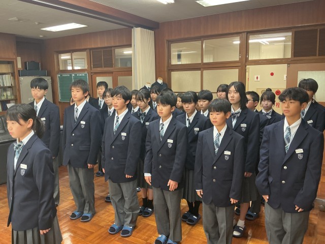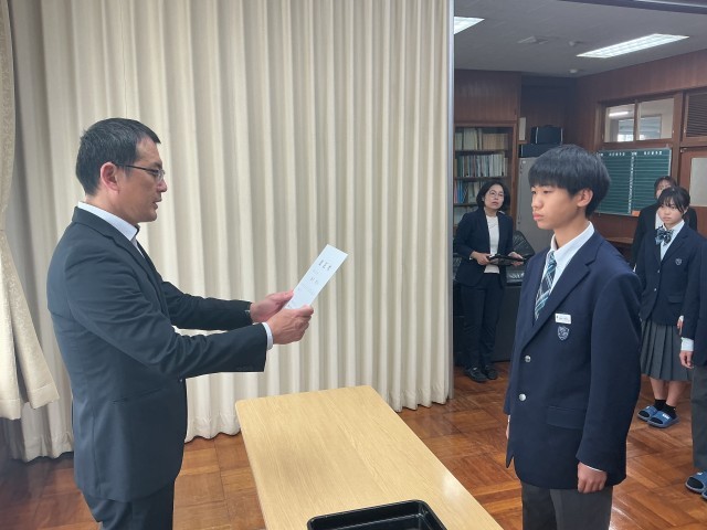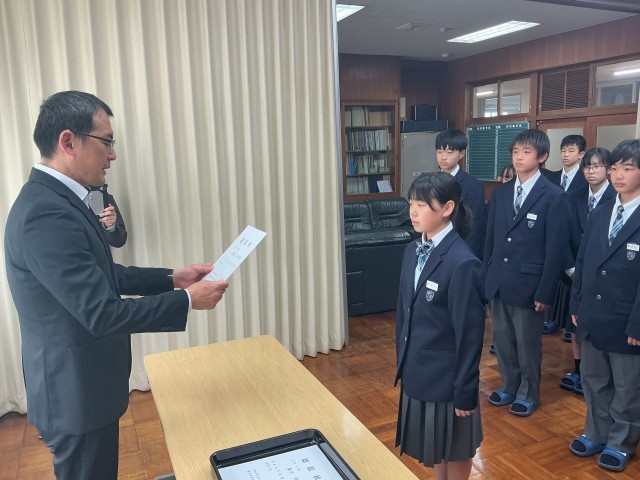 校長室にて認証式が行われました。どの学年も礼儀正しく、真剣な表情が伺えました。