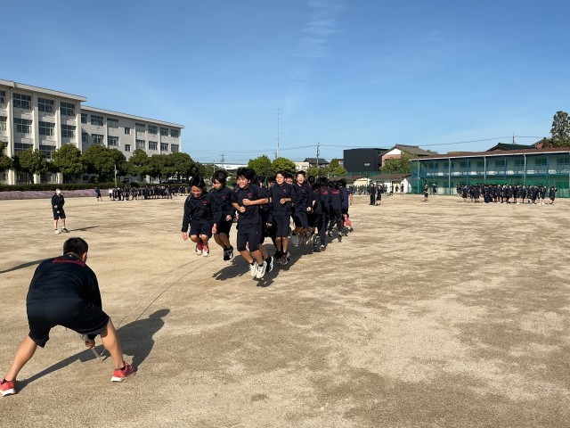本日から体育祭日課が始まりました。早速大縄跳びの練習が始まり、運動場のあちらこちらから元気な掛け声が聞こえてきました。日々の練習で団結力を高め、どれくらい記録を伸ばせるか楽しみです。