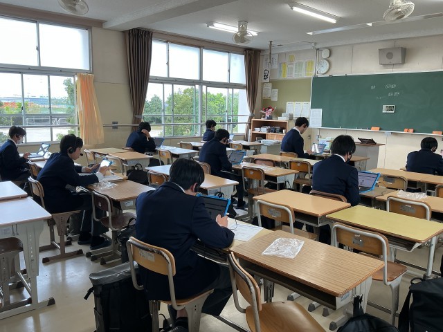 4/24 3年 全国学力・学習状況調査 公開日 2026/04/24 更新日 2026/04/24 各学年から 全国学力学習状況調査の英語「話すこと」の検査を行いました。いました。ヘッドセットを使って実際に英語で問題に答えることで、話す力を検査しました。 3年