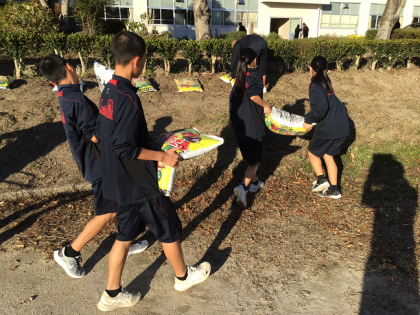 学校の正門を入ってすぐのメイン花壇に、春花壇づくりとして、花の苗を植えました。...