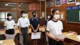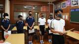 第67回全日本中学校通信陸上競技大会西三河予選会で入賞した生徒が校長室を訪問し...