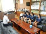1年生 チアリーディング、アーティスティックスイミングで活躍する生徒が校長室を訪問しました!