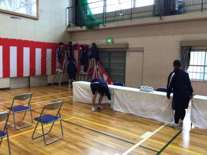 式場となる体育館も着々と準備が進みます。