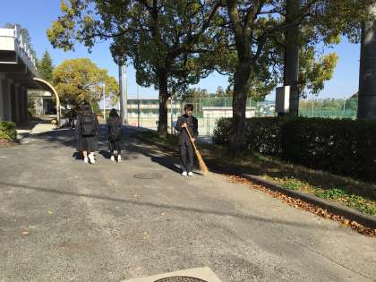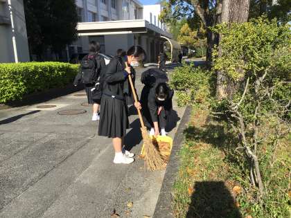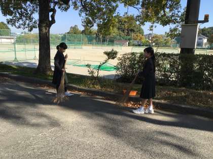 おはようございます。たくさんの生徒が登校してすぐ落ち葉を掃除していました。素敵な姿でした。