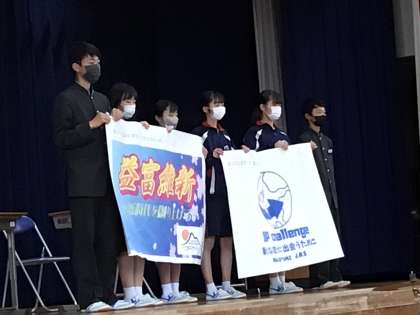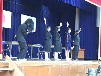 新入生歓迎会歓迎会では生徒会が益富中学校の紹介の劇を演じました。