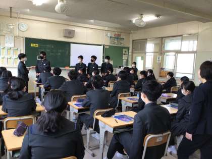 今日から時間割通りの授業開始です。3年生は英語、社会、そして数学ではキュビナの学習も始まっていました。