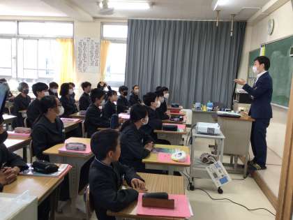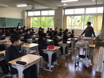 学年主任の先生の授業は、特に緊張した様子でした。特に1年生は教科ごとに先生が入れ替わるので、しばらく緊張しますね。