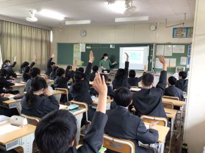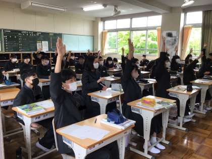 1年生社会科では、大陸の名前などの質問にたくさん手があがっていました。