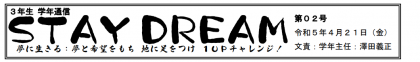 第3学年 学年通信02号を掲載します。 第3学年 学年通信02号