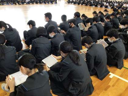 生徒総会が行われています。全校生徒がタブレットに入っている生徒会要項を確認しながら進められています。無関心にならず、より良い学校生活が送れるよう一人一人が考えて欲しいと思います。