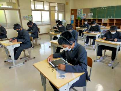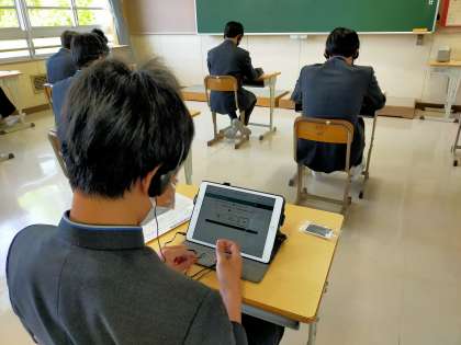 学習用タブレットを用いて、英語の「話すこと」のオンライン調査を実施しました。