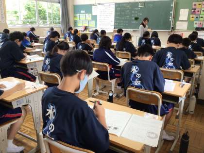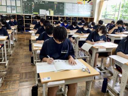 テストが始まりました。1年生は問題用紙を配られている時から緊張が感じられましたが、落ち着いて問題を読みながら解答していました。