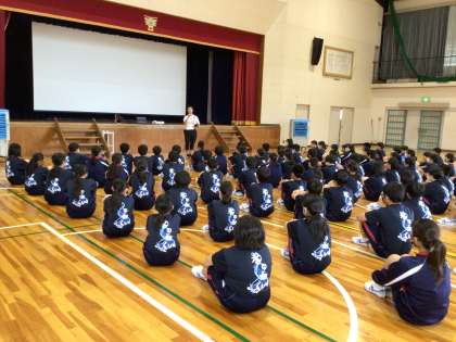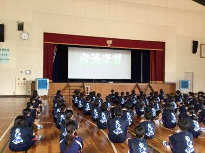 1年生は宿泊学習に向けての集会をしていました。宿泊学習の意義や目的などを先生から聞き、オープニングビデオを見ました。
