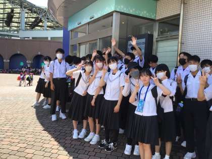 2組は、八景島シーパラダイスに到着しました。「シー太君」の前で集合写真を撮り、水族館内へlet's go!