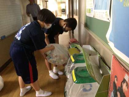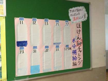 保健委員の「ほけん1up チャレンジ 水分補給編」と福祉委員の「エコキャップ、プルタブ集め」が始まっています。ご協力ありがとうございます。