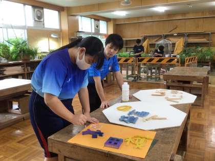 特別支援学級の畑のプレートを作っています。とても丁寧な作業で、素敵なプレートができそうです!
