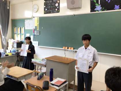 2年生6名に益富賞を渡しました。