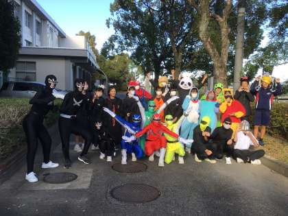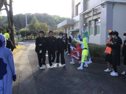 今日はハロウィンなので、思い思いのコスプレをして盛大なあいさつで迎えていました。