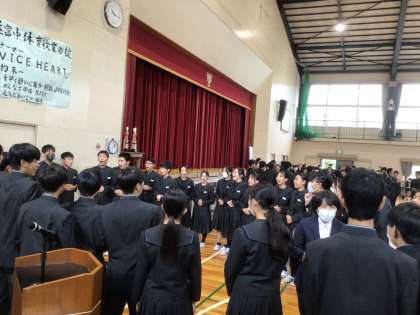 いよいよ本番です。開会式の後に声出しをして気落ちを高めています。