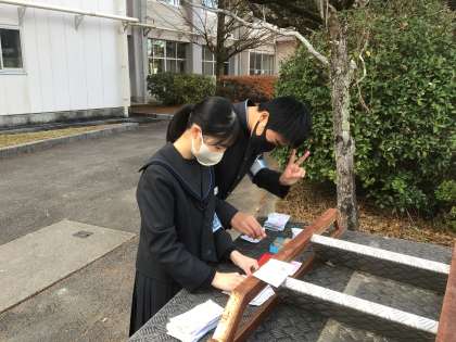 落ち葉集めや運動場の草取りなど、たくさんの生徒がボランティアをしています。