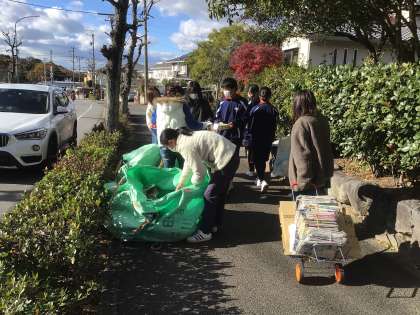 授業参観の午後に地域の資源回収をしています。