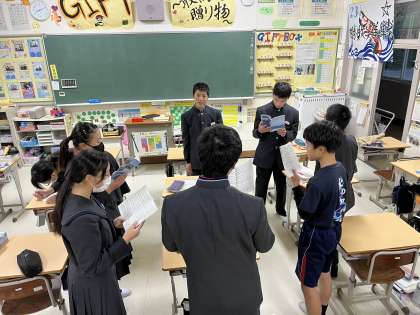 2年生は自然教室に向けて、合唱の練習を始めていました。