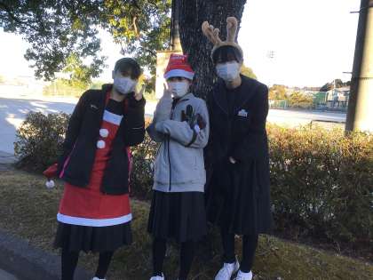 今朝は、生徒会がXmasのコスプレで盛り上げ、冬休みのボランティアの募集をしました。クリスマスの衣装での元気なあいさつは、気分が盛り上がりました。