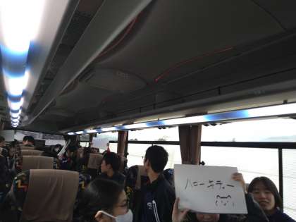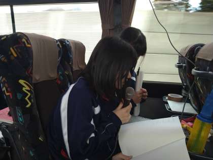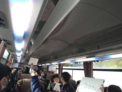 どのクラスも準備したバスレクをしながら向かっています。