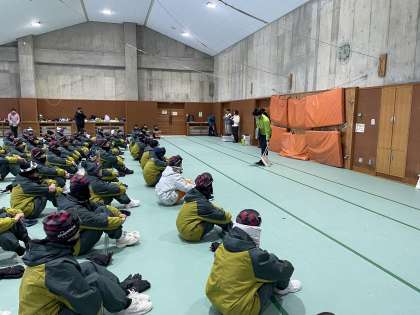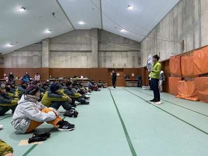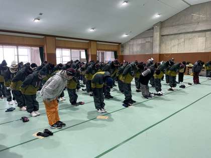 入所式です。元気よく所員さんに挨拶をし、真剣に話を聞いています。