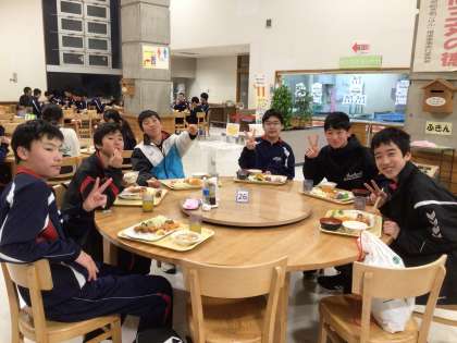 食事は野菜サラダ、スパゲッティナポリタン、ミートボール、ハムカツ、玉こんにゃく、高野豆腐、フライドポテト、白玉と野菜の煮物、ご飯、お味噌汁を好きなだけ食べられます。ジュースとコーヒーもあります。