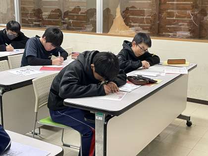 立志式後、クラスごとに学習室へ移動し、お家の方への手紙を書いています。家族からの手紙を読み、あふれる想いが込み上げてきます。保護者の皆様、手紙のご協力ありがとうございました。