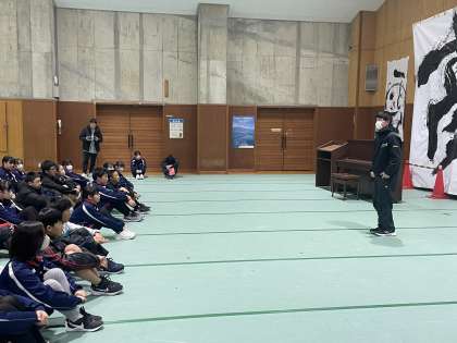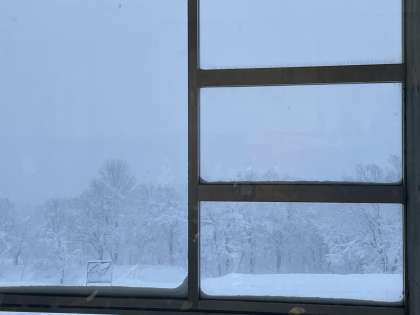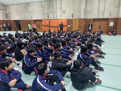 おはようございます。本日の妙高はたくさんの雪が降っています。朝のつどいを行いました。