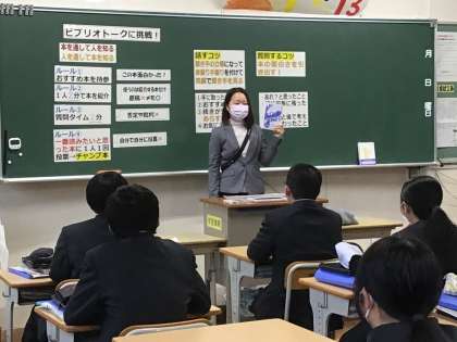 豊田市中央図書館より、出前授業に来ていただきました。「ビブリオトーク」に挑戦しました。