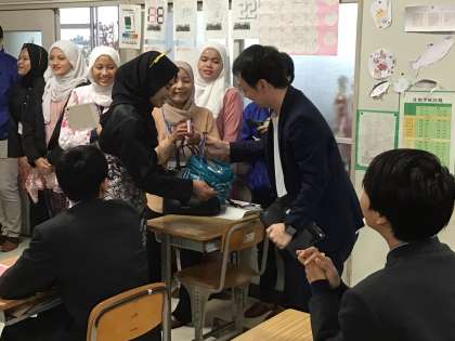 マレーシアの多国籍文化や祭事、通過の説明があり、最後にクイズも行われました。正解するとプレゼントがありました。