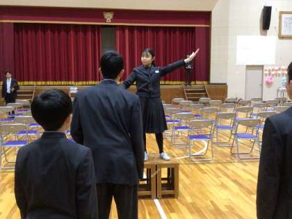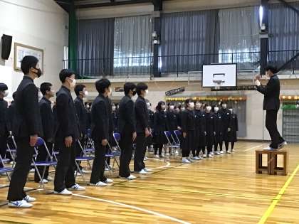 1、2年生より「群青」を合唱し3年生に送りました。3年生からも「エール」の合唱がお返しされました。
