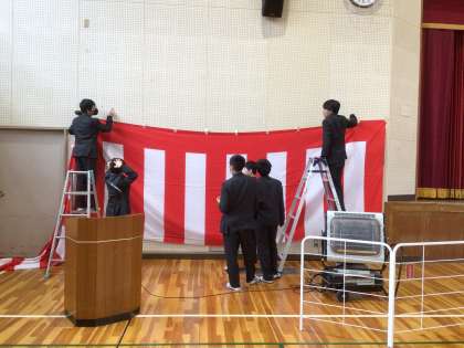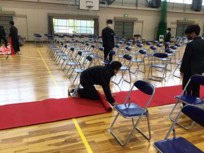 明日の卒業式のための準備を行なっています。