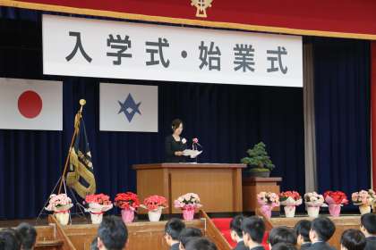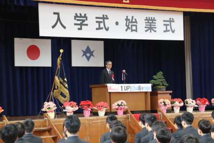 104名が入学しました。市議会議員の吉野様にお祝辞をいただきました。