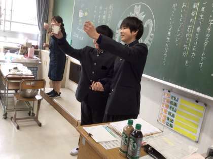 2年生は、ゲーム、乾杯、自己紹介などをしていました。