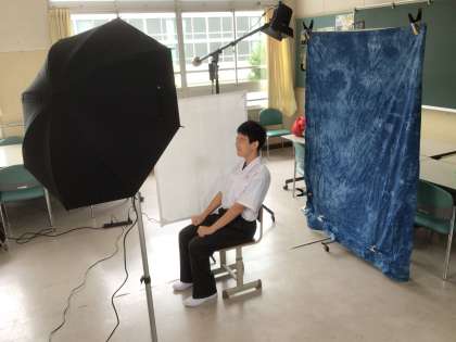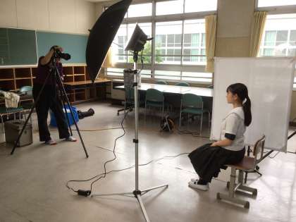 3年生が卒業アルバムの個人写真を撮影していました。できあがりが楽しみです。